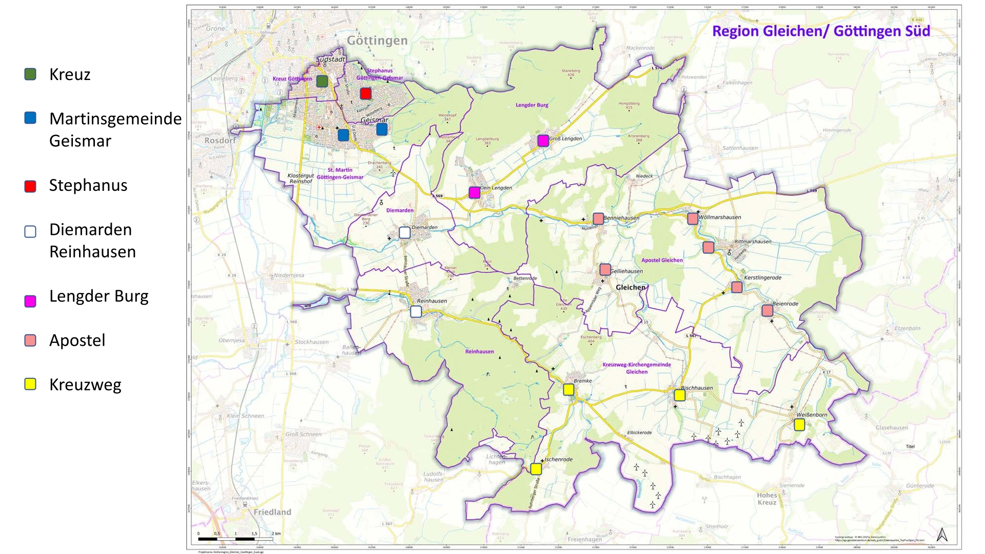 2. Alleine die räumlichen Dimensionen unserer Region sind beeindruckend. Die sehr unterschiedlichen Bedingungen in den einzelnen Gemeinden wurden deutlich. Dabei spielte diesmal nicht die Anzahl der Gemeindeglieder die entscheidende Rolle, sondern die Anzahl der Kirchen in einer Gemeinde, ihre Zukunftsaussichten (Bestandskirchen – Prüfkirchen) und die personelle Situation vor Ort.