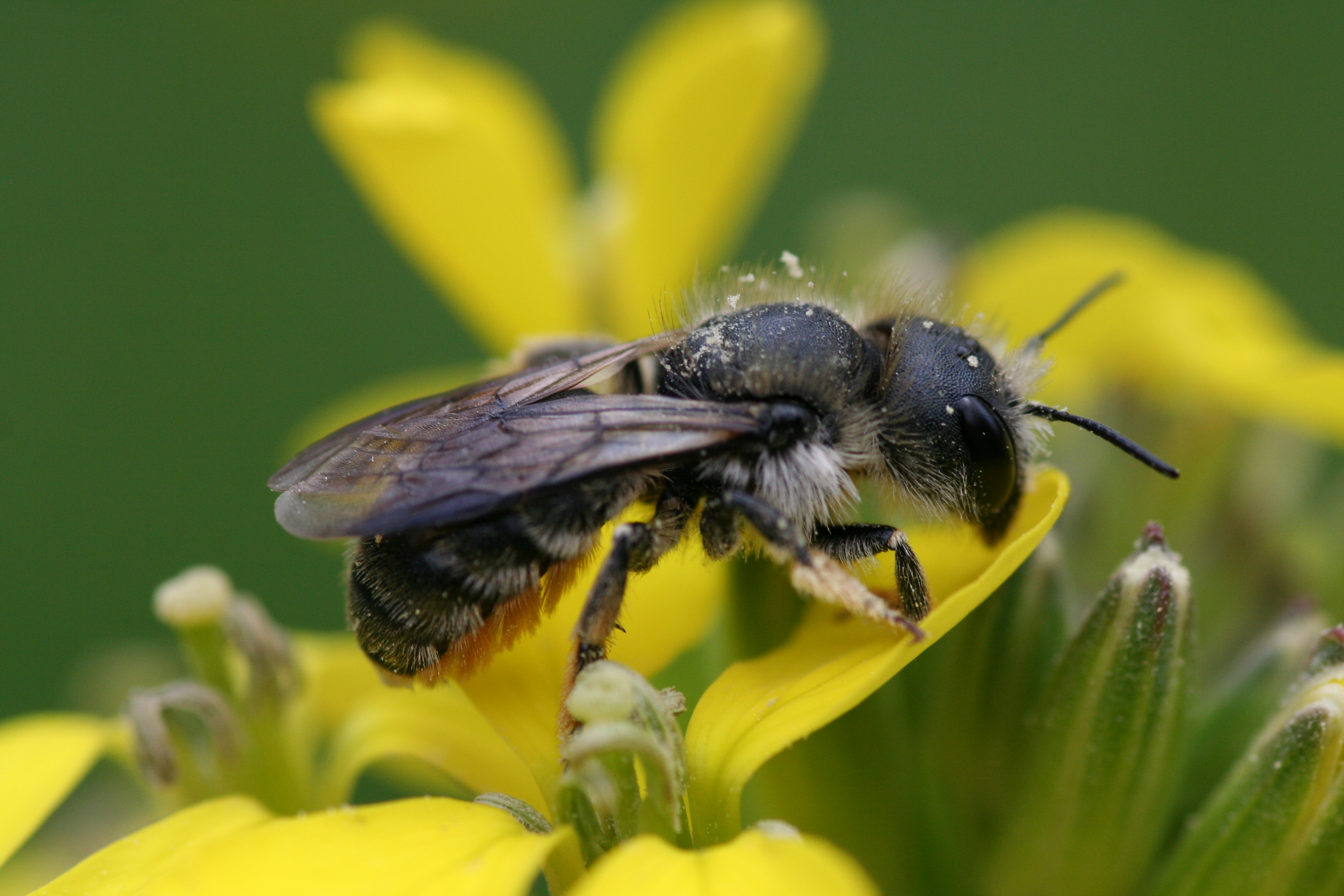 Ebenfalls selten: die Schöterich-Mauerbiene (Osmia brevicornis), ein Nahrungsspezialist auf Kreuzblütler, die totholzreiche Waldränder und Streuobstbestände besiedelt und in Hohlräumen wie Pflanzenstängeln oder Insektenfraßgängen nistet.