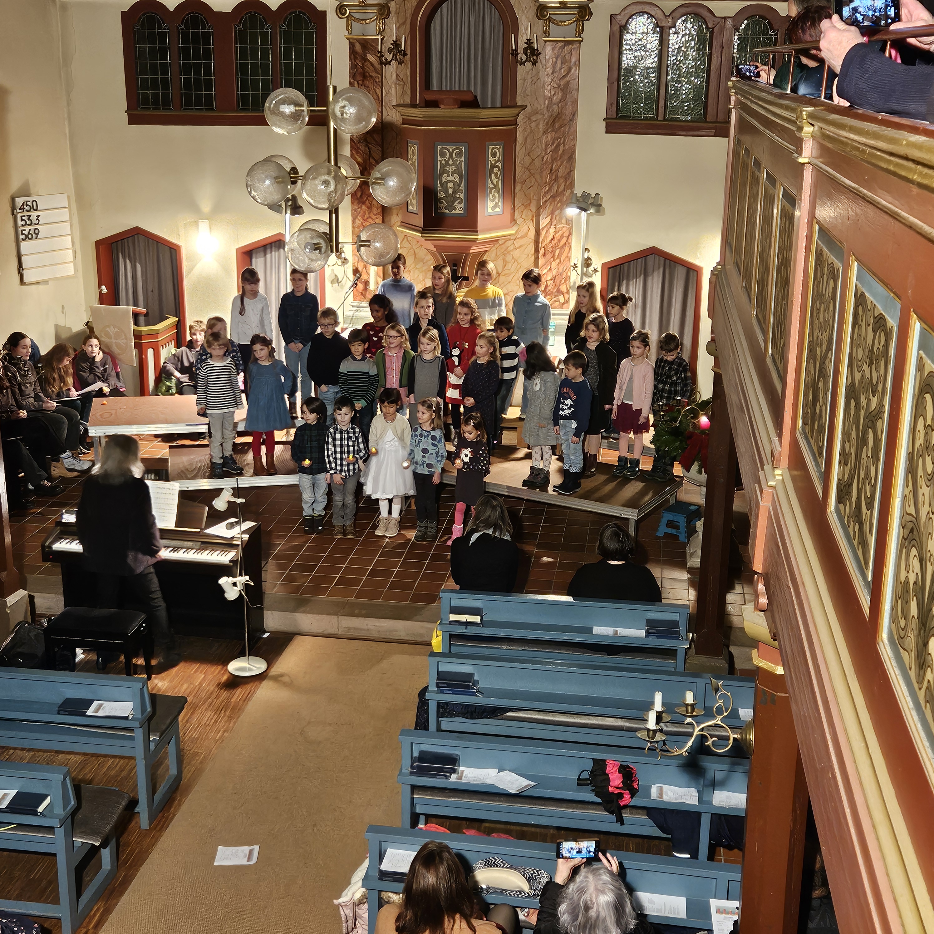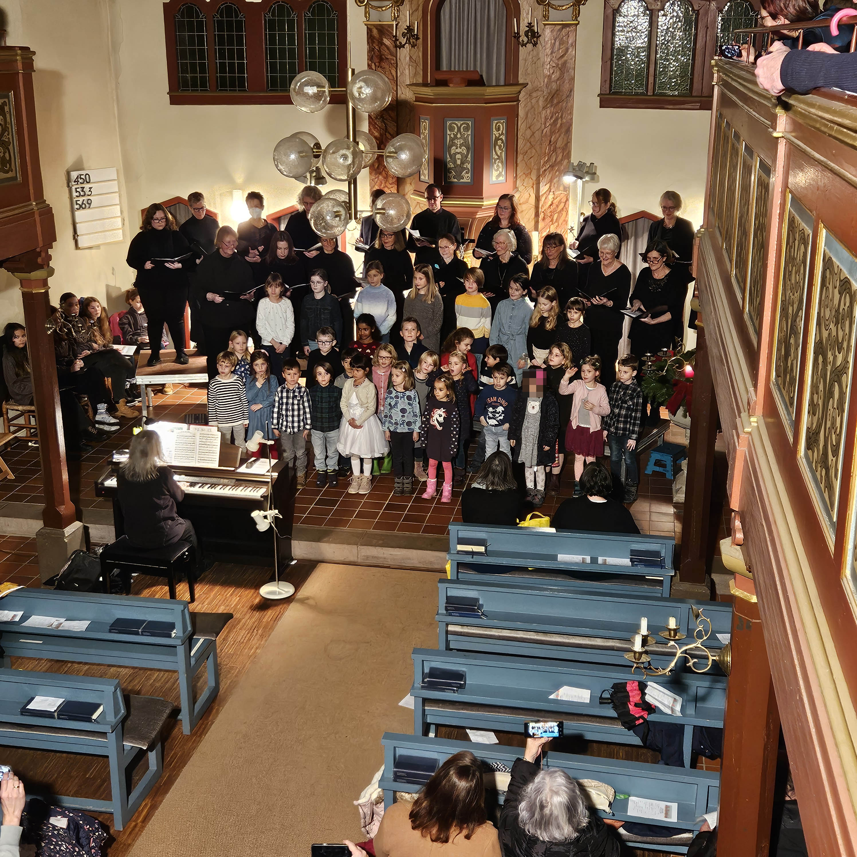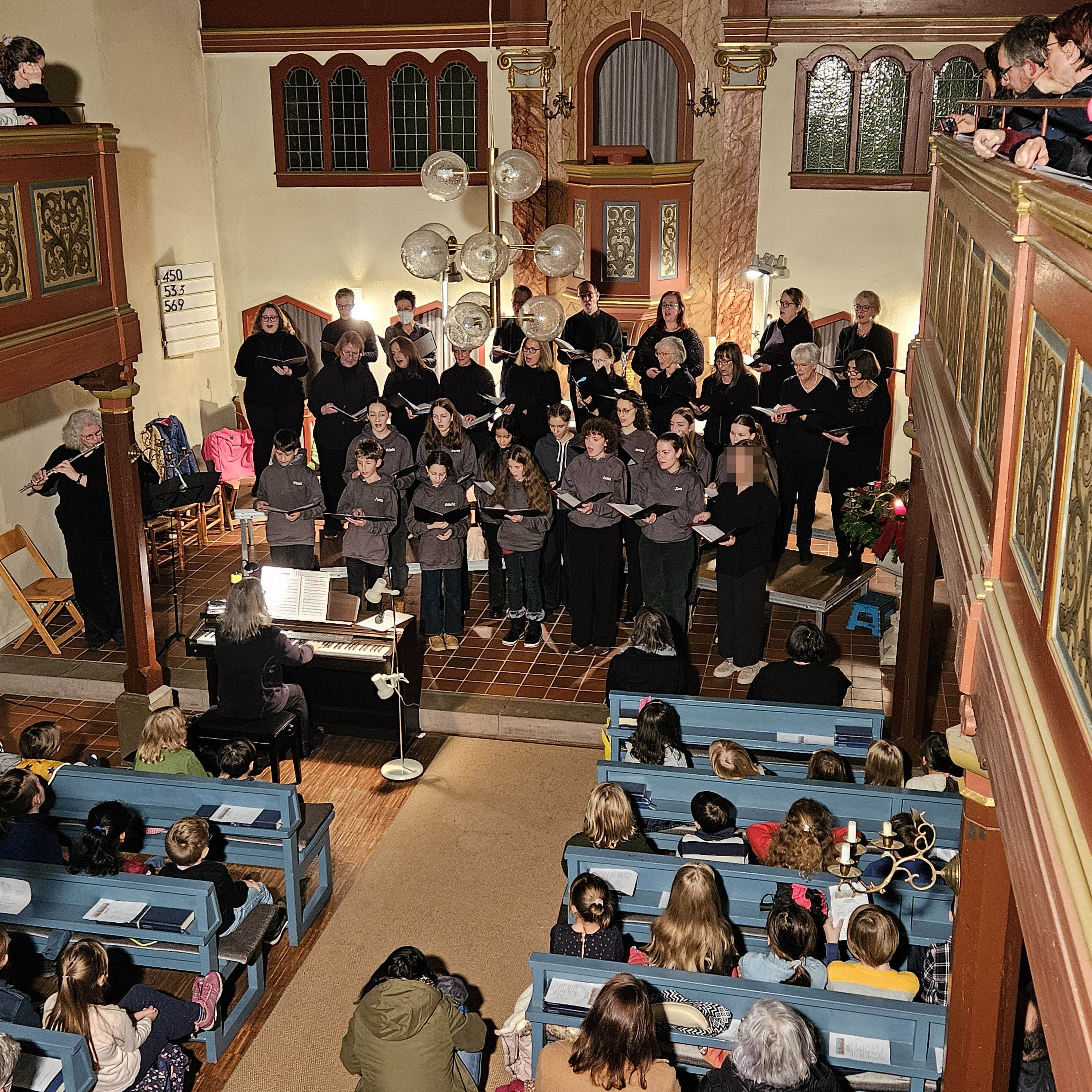 Das aufgeregte Gemurmel verebbt, die Glocken läuten, die Orgel beginnt: „Macht hoch die Tür“ singen alle gemeinsam zum Beginn des diesjährigen Konzertes der Chöre unter der Leitung von Ona Stoertz.