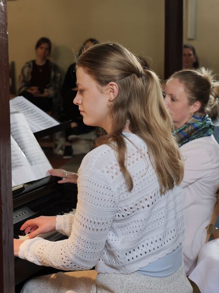Im zweiten Teil wurden auch andere Aspekte von Onas Arbeit deutlich: Neben den Chören zeigten zwei Klavierschüler, was sie gelernt hatten, unterschiedliche Zusammenstellungen kleiner Gruppen aus den Chören waren zu hören. Einen besonderen Akzent setzte sicherlich Christian mit seiner selbstgeschrieben „Ode an Ona“.