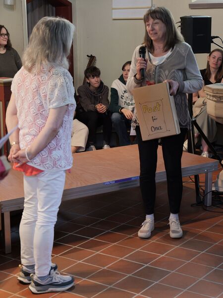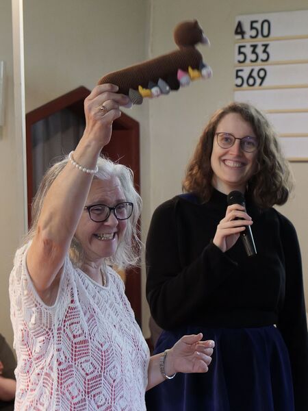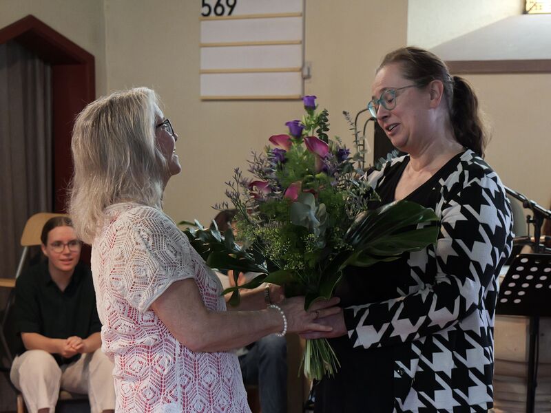 Schließlich wurde Ona nach vorne gebeten: Dankesworte wurden gesprochen, Geschenke, Blumen, Erinnerungen wurden überreicht. Lizzie sprach ein besonderes, persönliches Gebet. Und dann erklang – gesungen von allen Chören gemeinsam – das allerletzte Lied für Ona: „Sei behütet“.