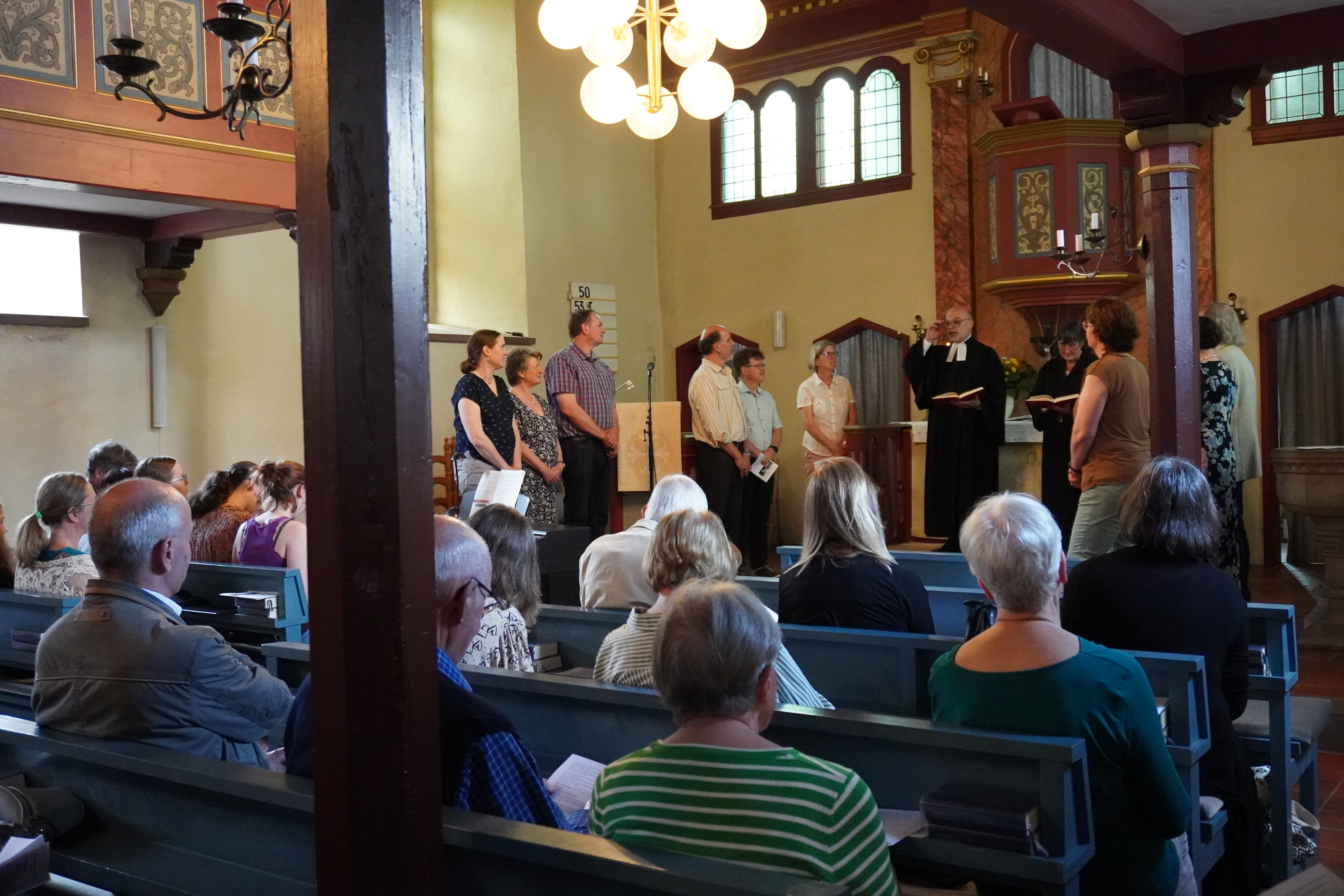 Das Fest begann am Nachmittag mit einer Andacht in der Kirche in Klein Lengden. „Einfach spitze, dass Du da bist“ begrüßten Minisänger und KiSiGru zusammen die Gemeinde, ein schönes, lebendiges Willkommen. Nach der Begrüßung durch Prädikantin Raupach stimmte die Gemeinde das Lied „Geh‘ aus mein Herz und suche Freud“ an. Ohne die sonst übliche Orgelbegleitung erklang der Choral (wie auch die beiden anderen Lieder) ganz ungewohnt, entfaltete aber eine ganz besondere Atmosphäre.
